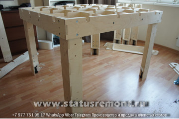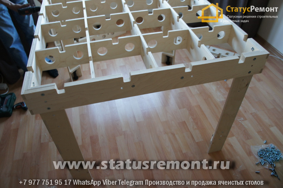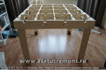 Ячеистый стол размером 1200 мм х 1100 мм. Стол производства StatusRemont изготовлен из шлифованной фанеры 12 мм на